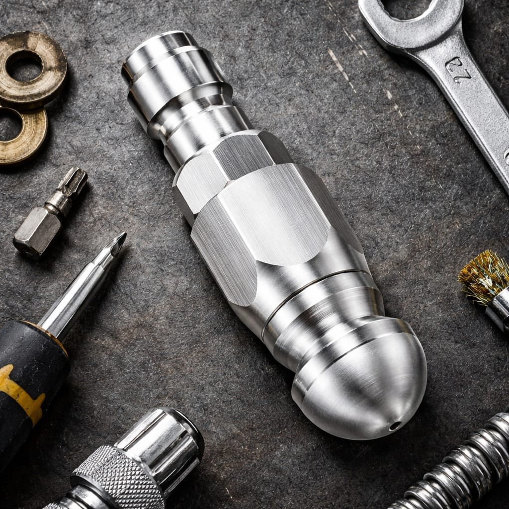 Boquilla jet cleaner, para destapar tuberías y drenajes 6 chorros Hecho de acero inoxidable 304 de la más alta calidad para durar toda una vida. Perfecto para enrasar zuecos, escombros o limpiar tuberías congeladas mientras se fija a la manguera de chorro. Diseño compacto para caber fácilmente en todas las líneas de alcantarillado, tuberías de drenaje y áreas de difícil acceso. Diseño de 6 chorros de pulverización traseros para destapar tuberías y demoler zuecos. Satisfacción garantizada por Jet Cleaner. Incluye: 1 boquilla de chorro de acero inoxidable Con cople rápido Especificaciones: presión mínima necesaria 1500 psi máxima 5000 psi flujo caudal mínimo necesario 3.0 Gpm y máximo: 8.0 gpm temperatura máxima: 300°F/ 60ºC