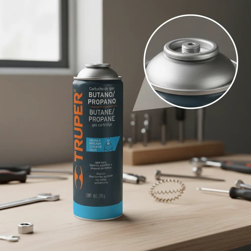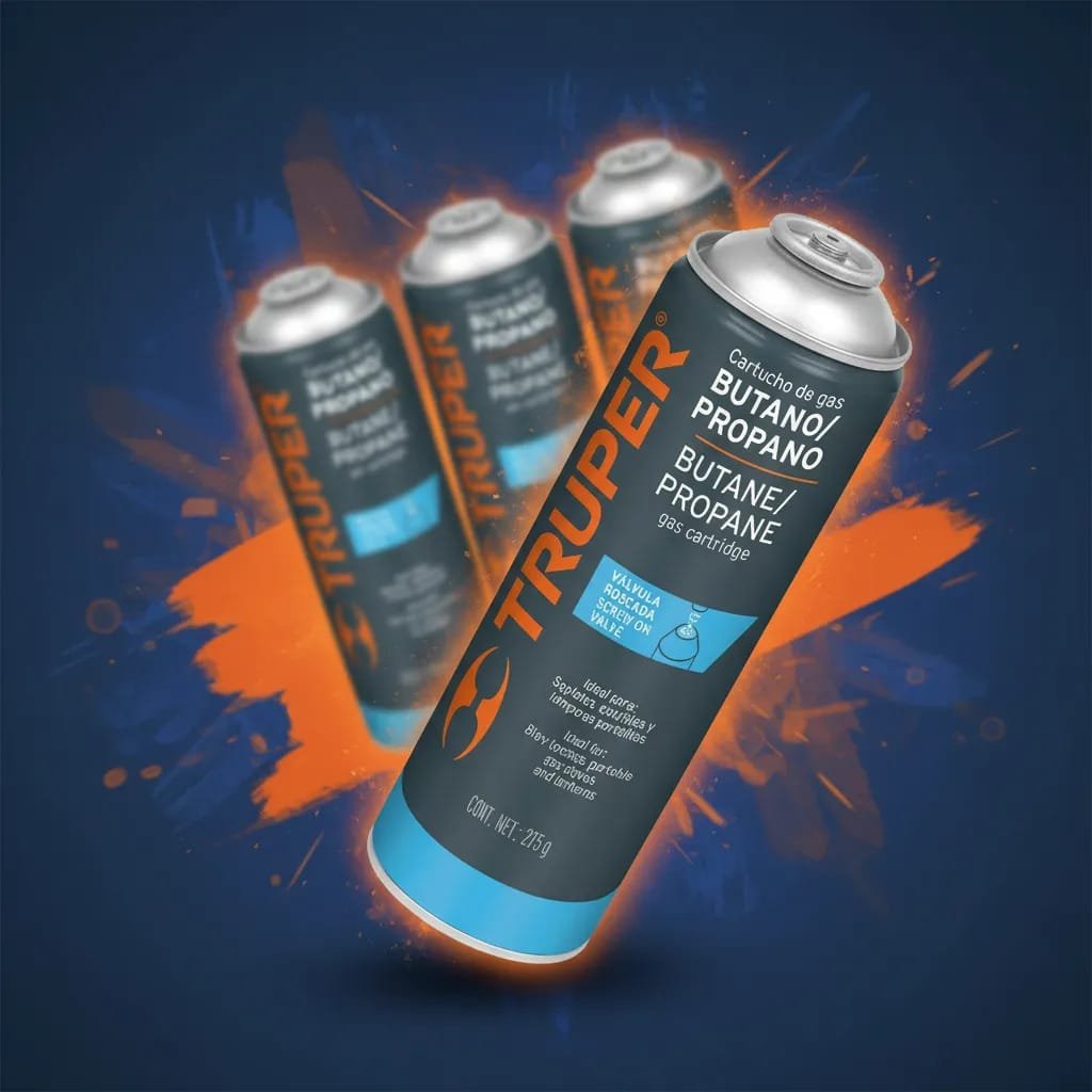 Lata de gas butano/propano con válvula roscada. Ideal para sopletes, mecheros, lámparas y estufillas, fácil de transportar y no daña la capa de ozono. Para mejores resultados utilice mecheros y demás accesorios de la línea TRUPER, consulte la existencia de los accesorios que requiera para su complemento. Manéjese con cuidado y no se deje al alcance de niños.
