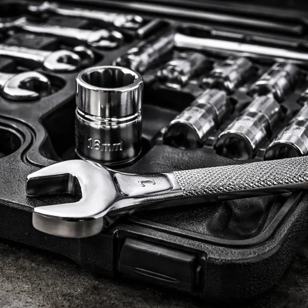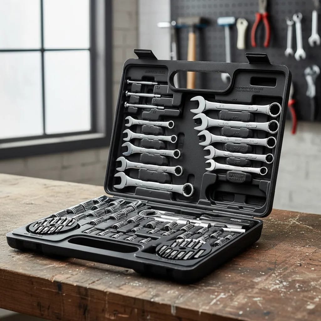 Estuche de plástico, Dados de acero con acabado cromado resistentes a la corrosión, Marcado para rápida identificación
