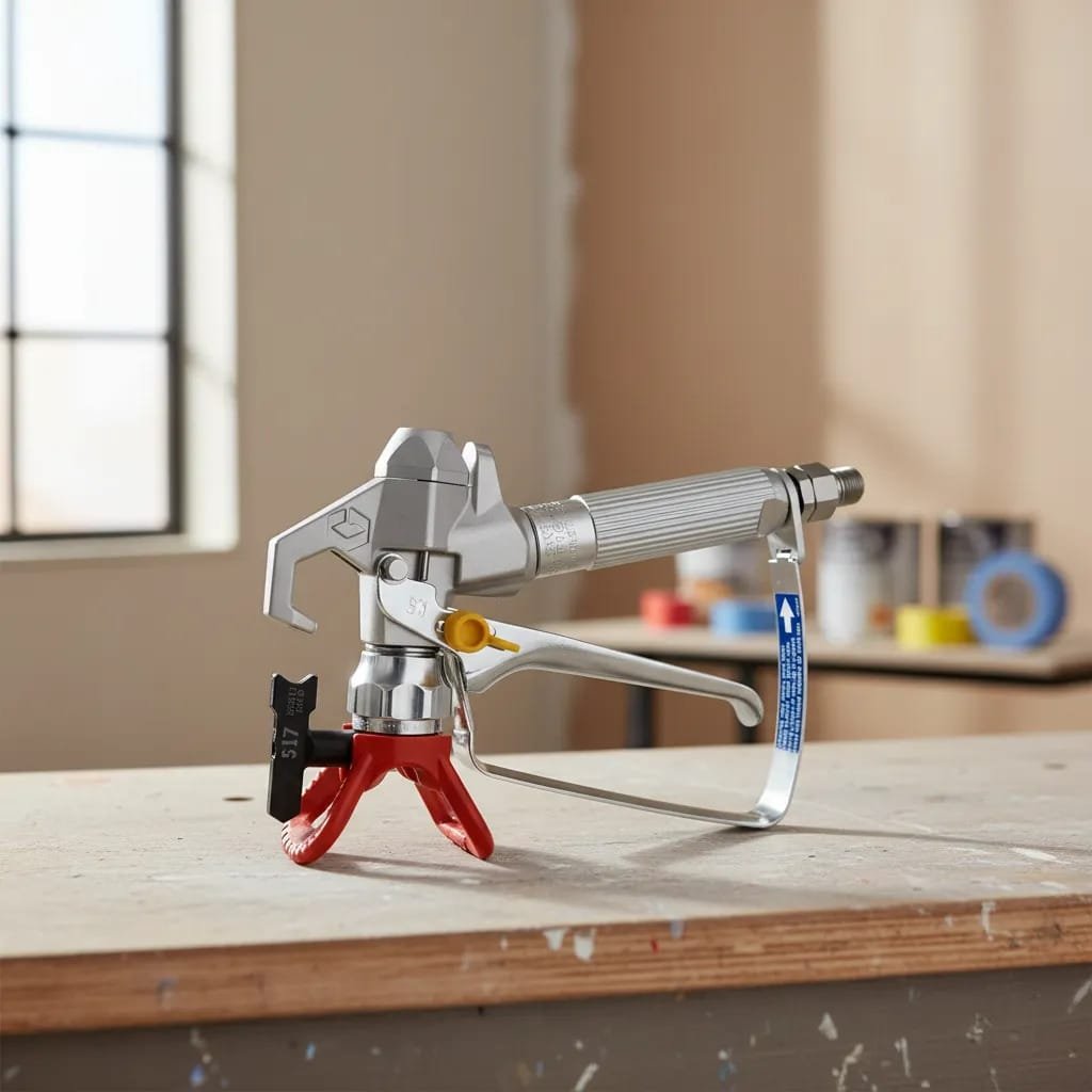 La pistola FTXPRESS está equipada con un mango adaptado que proporciona un máximo control y comodidad al usuario. Su diseño ergonómico reduce la fatiga del operador durante largas jornadas de trabajo, mientras que la protección desmontable del gatillo facilita el acceso al filtro, haciendo que el mantenimiento sea más rápido y sencillo. Además, el resorte está ubicado fuera de la trayectoria del fluido, lo que mejora notablemente el flujo y elimina problemas comunes como el cierre lento de la aguja.